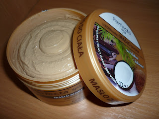 1. Ujędrniające masło do ciała czekoladowo-kokosowe Perfecta Spa z Dax Cosmetics. Jest ogólno dostępne w przystępnej cenie. Kupiłam je w Rossmanie za 12,99. Ma bardzo ładny zapach ale przy dłuższym użyciu zaczyna stawać się nie do wytrzymania. Masło dosyć dobrze się rozprowadza lecz niestety pozostawia smugi na skórze i brudzi jasne ubrania czy pościel. Nie polecam aplikacji zaraz przed założeniem ubrań. W moim przypadku nie ujędrnia ciała ale fajnie nawilża. Konsystencja jest dość ciężka więc nie polecam tego masła na lato. Opakowanie dosyć poręczne i smakowite ;) Ogólnie fajny produkt w przystępnej cenie ale nie koniecznie do niego powrócę. Będę testować inne masła do ciała.